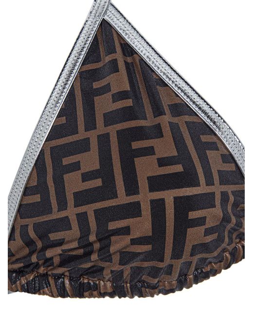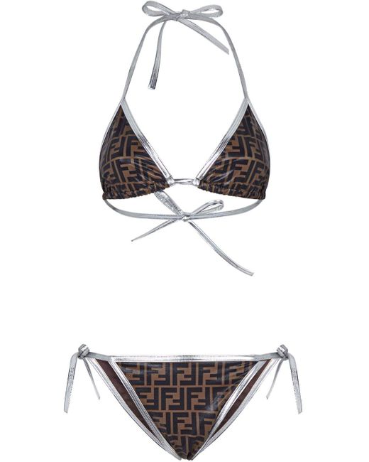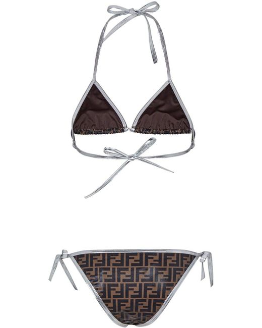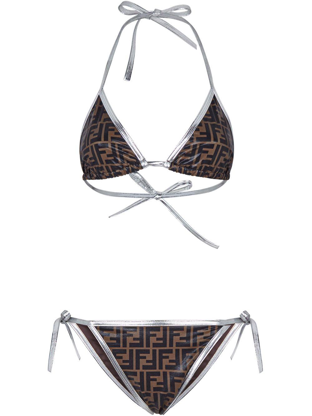 Bikini mit Monogramm-Print von Fendi. Merkmale: Schleifenverschluss hinten, Triangelform, Monogramm-Print, kontrastfarbige Nähte, seitliche Schleifenverschlüsse und hoher Beinausschnitt. Bademode darf nur über Ihrer eigenen Unterwäsche anprobiert werden. Farbe: braun