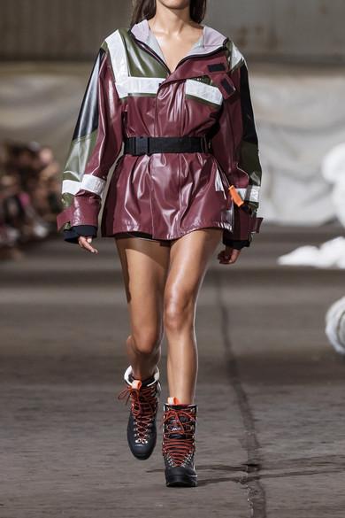 Ditte Reffstrup griff für die F/S 19-Kollektion von GANNI auf ihre Kindheitserinnerungen in der dänischen Provinz zurück – passenderweise enthält die Linie daher Regenjacken. Das "Askja" Modell, das in Kollaboration mit dem isländischen Label 66North entstand, besteht aus beschichtetem Ripstop und hat eine praktische Kapuze, einen Gürtel mit Schnalle sowie Klettverschlüsse an den Ärmelabschlüssen, die vor Umwelteinflüssen schützen. Packen Sie es diesen Sommer auch für Festivals ein. Hier gezeigt mit: GANNI Shorts, Victoria, Victoria Beckham T-Shirt, Gu_de Tote, GANNI Ankle Boots, Jennifer Fisher Ohrringen. Beschichteter Ripstop in Weinrot, Olivgrün und Schwarz. Verdeckter durchgehender Klett. Und Reißverschluss vorne. 82 % PVC, 18 % Nylon. Maschinenwäsche.