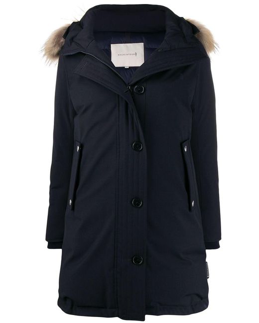 Parka mit Kapuze von Mackintosh. Merkmale: Reißverschluss an der Vorderseite, Vordertaschen und Oversized-Design. Farbe: blau