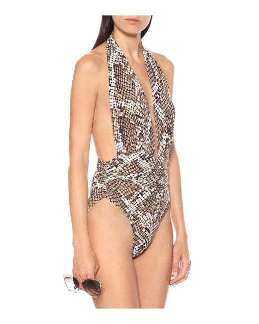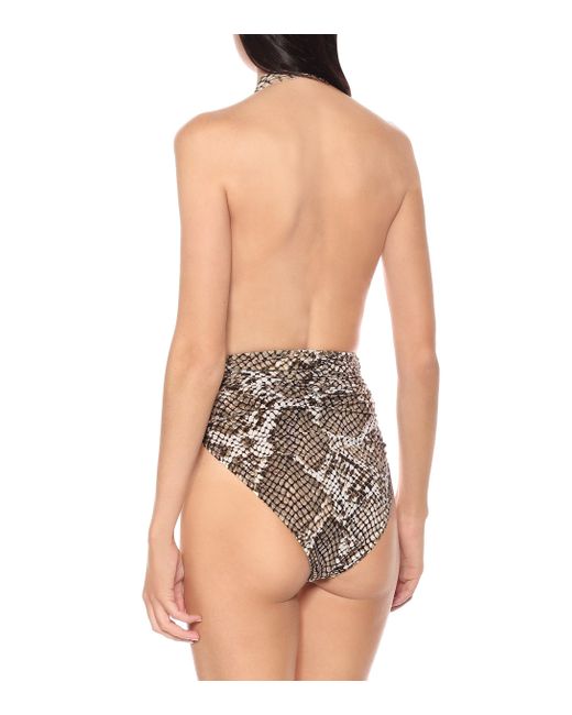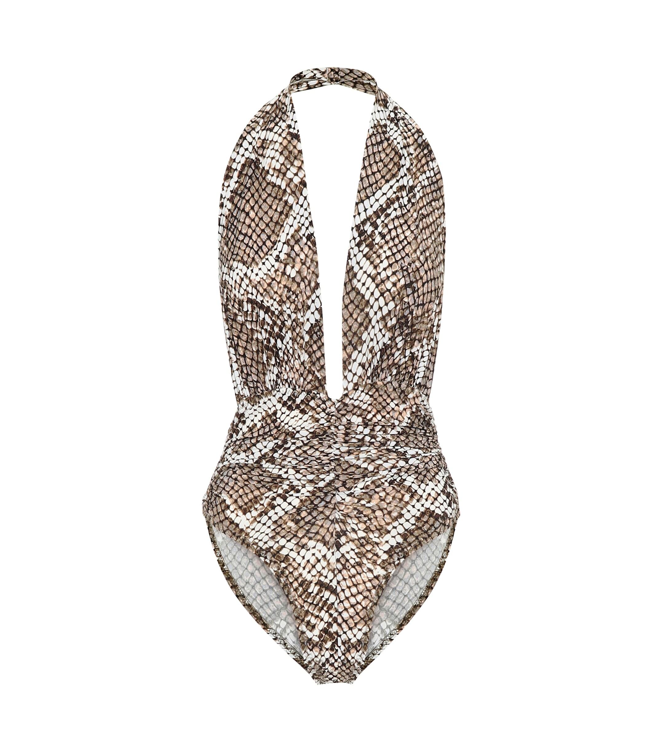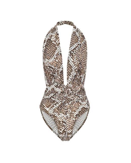 Animal Instinct: Der Marissa Badeanzug von Norma Kamali wurde aus elastischem Material gefertigt und besticht durch den angesagten Pythonprint. Farbe: natur