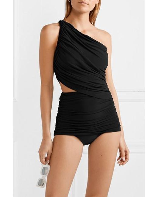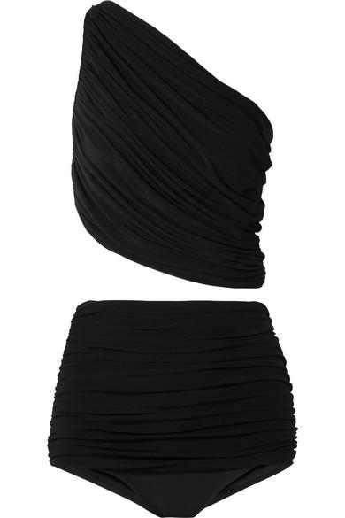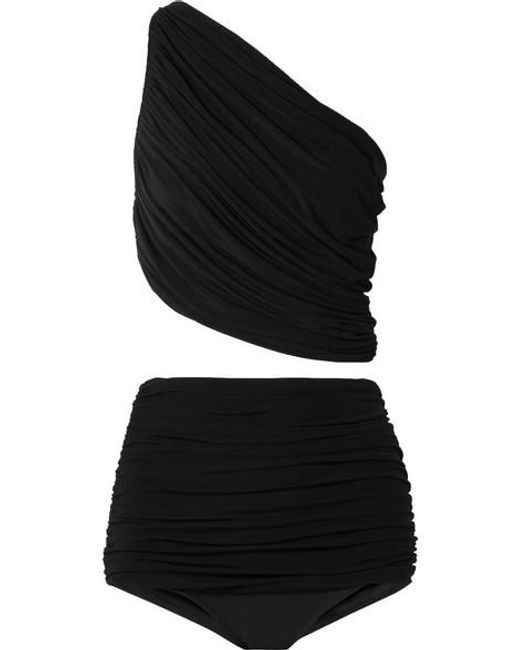Dieser geraffte Bikini mit asymmetrischer Schulterpartie von Norma Kamali erinnert an die Roben griechischer Göttinnen. Das Ensemble wurde aus Stretch-Materiel gefertigt und besteht aus einem eng anliegenden Oberteil sowie einem hoch sitzenden Höschen, das vollständige Bedeckung bietet – somit ist es eine glamouröse Wahl für Ihren nächsten Sommerurlaub. Tragen Sie dazu: Le Specs Sonnenbrille, Loren Stewart Ohrringe, STONE AND STRAND Ring, STONE AND STRAND Ring, Hirotaka Ear Cuff. Schwarzes Stretch-Nylon. Ohne Verschluss. 87 % Nylon, 13 % Spandex; Futter: 100 % Polyester. Handwäsche. Wir empfehlen, die Bademode von Norma Kamali nach dem Schwimmen in Salz. Oder gechlortem Wasser sofort mit kaltem Wasser auszuspülen, um sie bestmöglich zu erhalten. Bodylotion, Sonnencreme, Öl und Chlor können Verfärbungen verursachen. Dies ist jedoch nicht auf Fabrikationsfehler zurückzuführen. Bitte beachten Sie die Pflegehinweise, um den Artikel bestmöglich zu erhalten. Farbe: schwarz