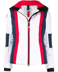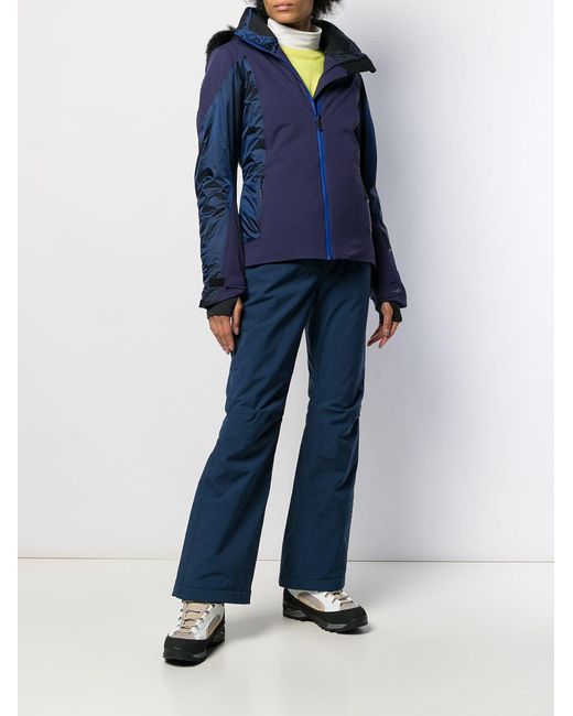 Aile' Skijacke von Rossignol. Merkmale: Kapuze mit Kunstfellbesatz, Reißverschluss an der Vorderseite, lange Ärmel, kontrastfarbige Einsätze, seitliche Taschen mit Reißverschluss, mit Stretchanteil, enganliegende Silhouette und kurzer Schnitt. Farbe: blau