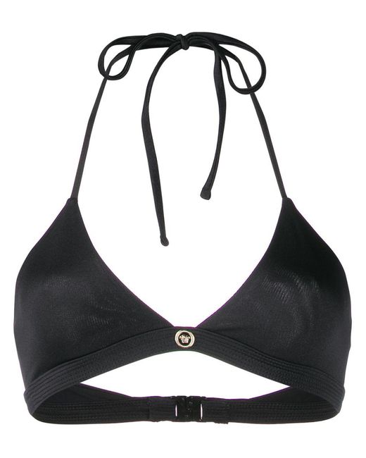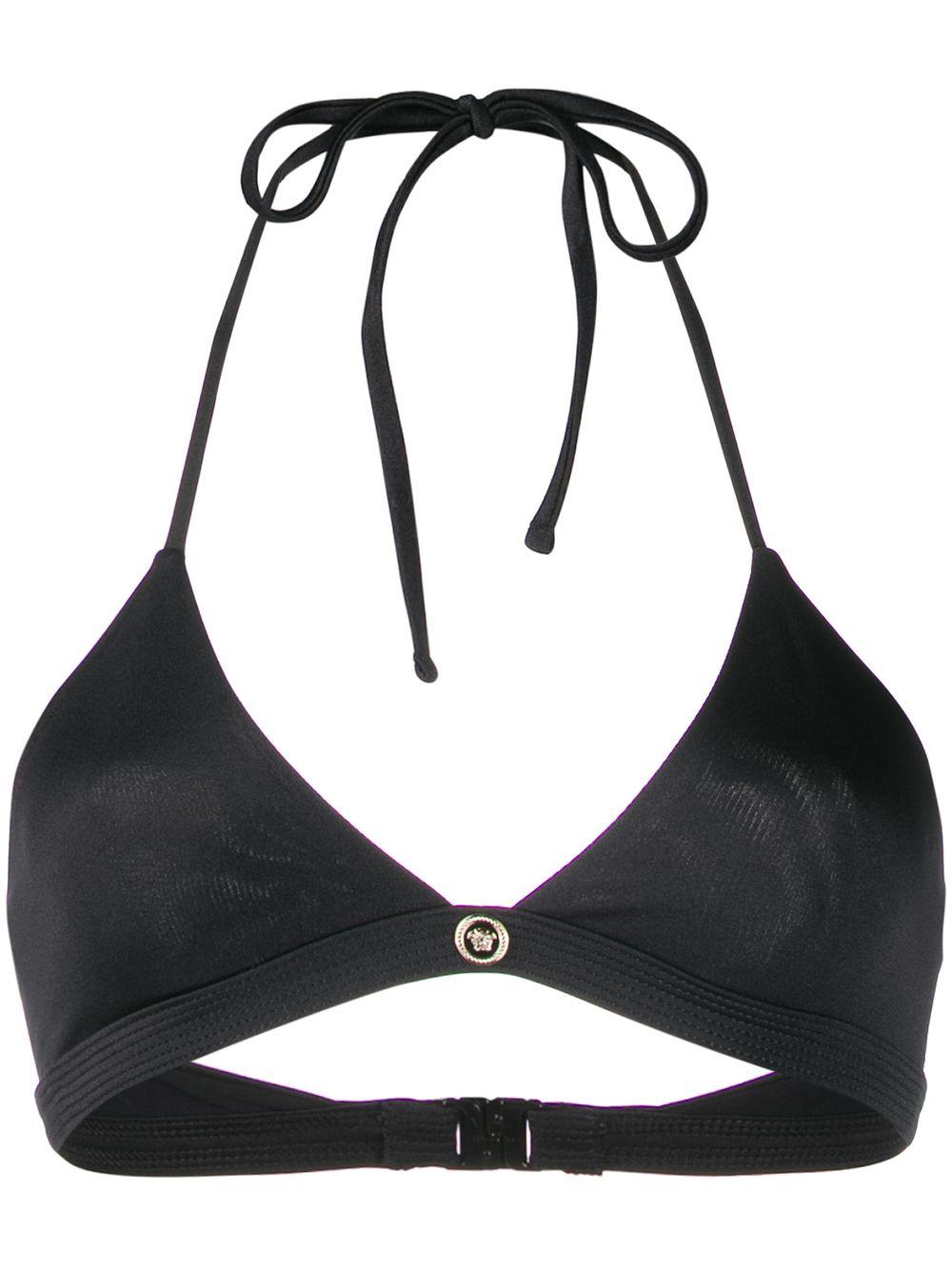 Cropped-Bikinioberteil mit Medusa von Versace. Merkmale: Triangel-Form, Neckholder, Medusa-Applikation und Klippverschluss. Farbe: schwarz