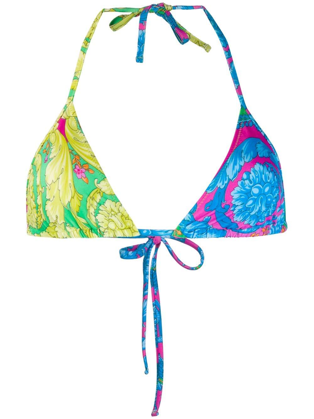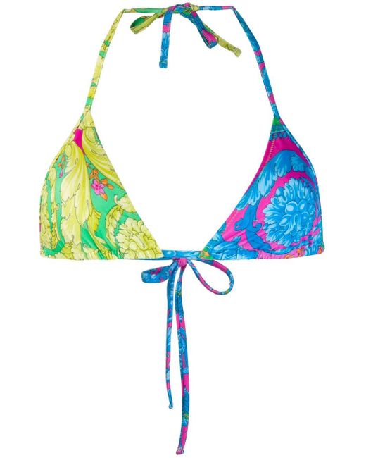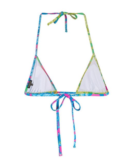Zweifarbiger Bikini von Versace. Merkmale: Neckholder-Ausschnitt. Bademode darf nur über Ihrer eigenen Unterwäsche anprobiert werden. Farbe: blau