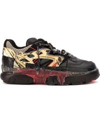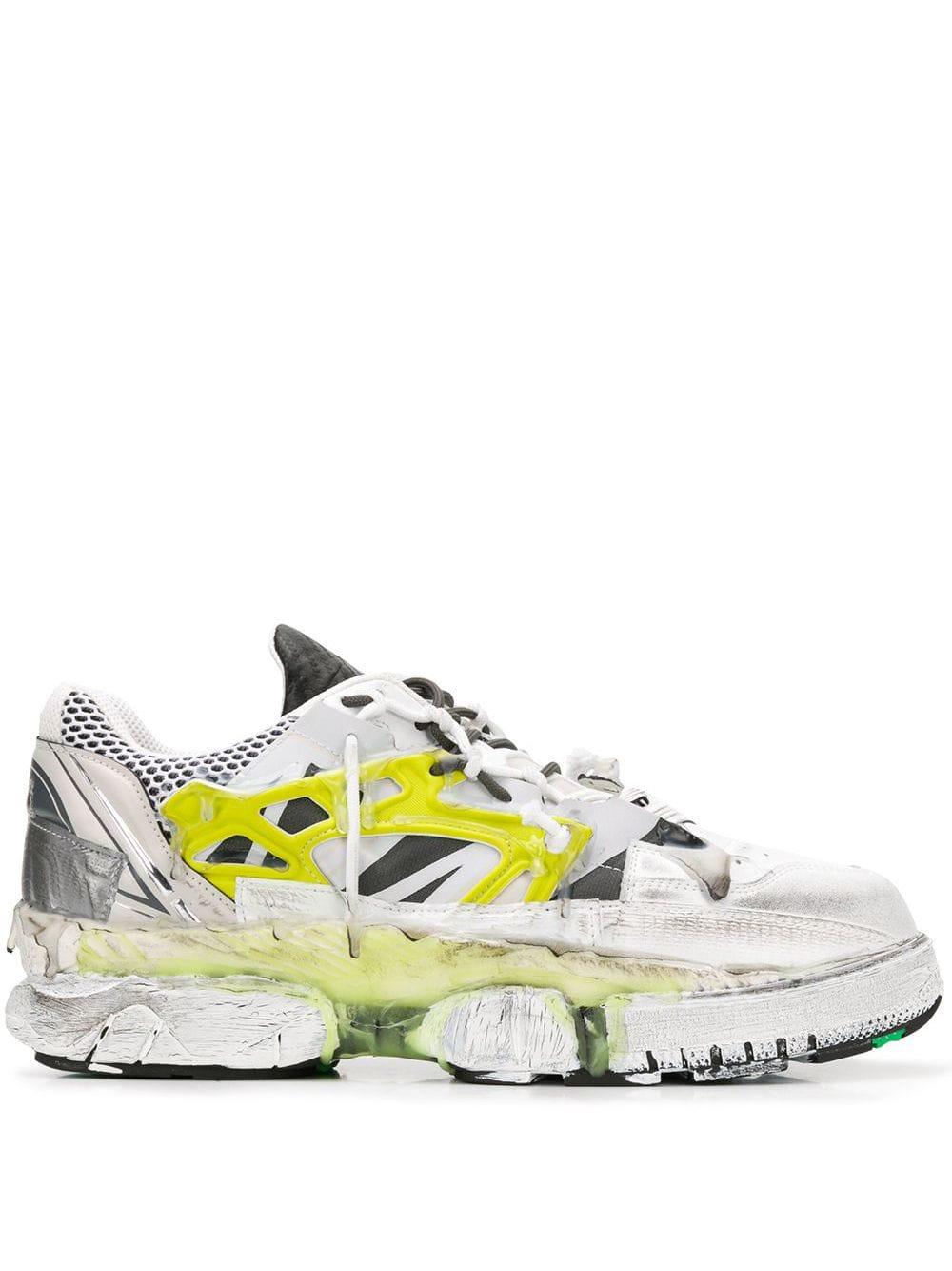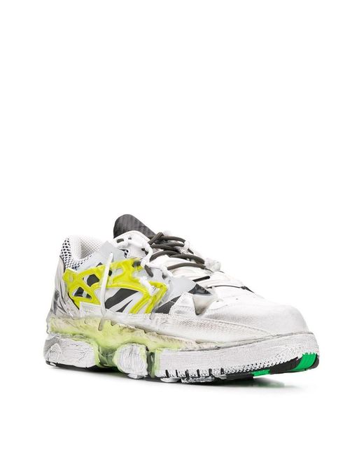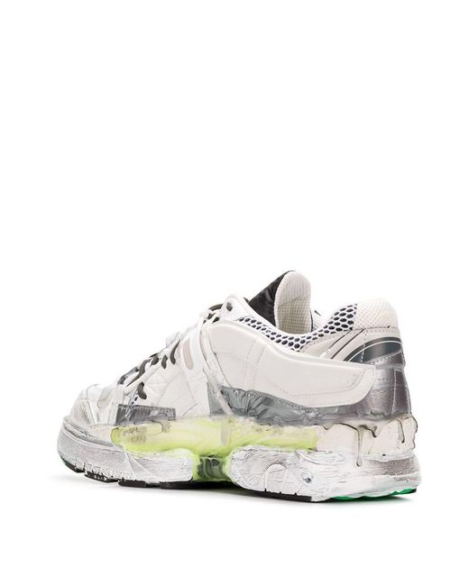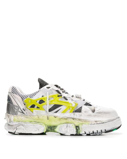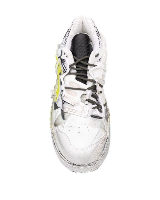 Fusion' Sneakers aus Leder von Maison Margiela. Merkmale: runde Kappe, Schnürung vorne, Distressed-Effekt und geriffelte Gummisohle. Farbe: weiß