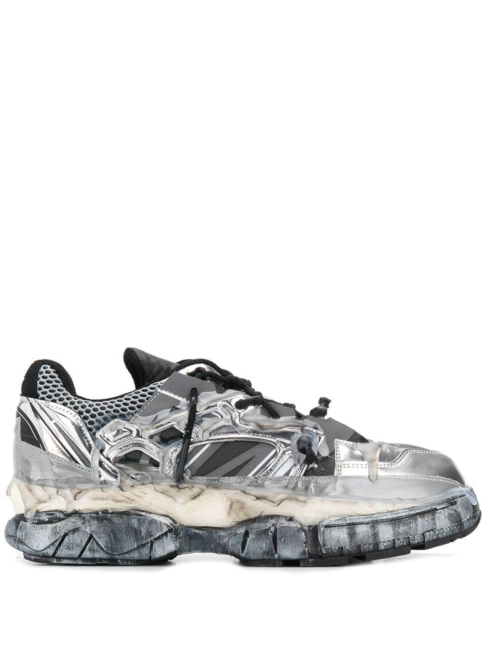 Sneakers mit PVC-Detail von Maison Margiela. Merkmale: runde Kappe, Schnürung vorne, gepolsterter Knöchel und Gummisohle. Farbe: weiß