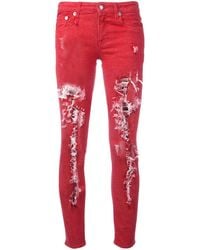 Enge Jeans Aus Beschichtetem Baumwolldenim - Rot